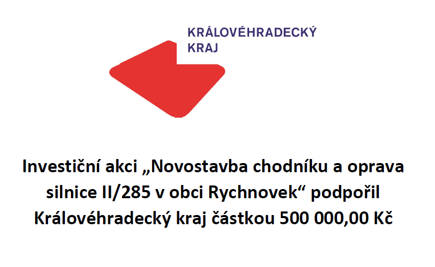 Projekt: "Novostavba chodníku a oprava silnice II/285 v obci Rychnovek" - stavbu chodníku podpořil Královéhradecký kraj částkou 500 000,00