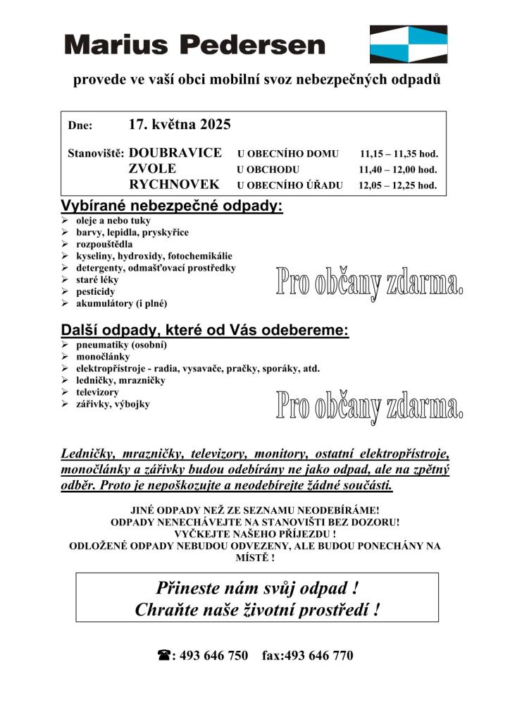 Mobilní sběr nebezpečného odpadu 17.5.2025